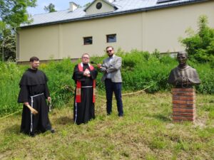Z tej okazji w miniony weekend (27-28.05) na Kalwarię Pacławską przyjechali terapeuci, psycholodzy, prawnicy i kanoniści, ale także dobrodzieje, budowlańcy i wolontariusze związani z naszą placówką. Był to czas wspólnych rozmów o obecnym funkcjonowaniu ośrodka oraz o jego najbliższej przyszłości. Kulminacyjnym wydarzeniem było odsłonięcie i poświęcenie popiersia Patrona – o. Wenantego Katarzyńca, przy przyszłej siedzibie poradni.