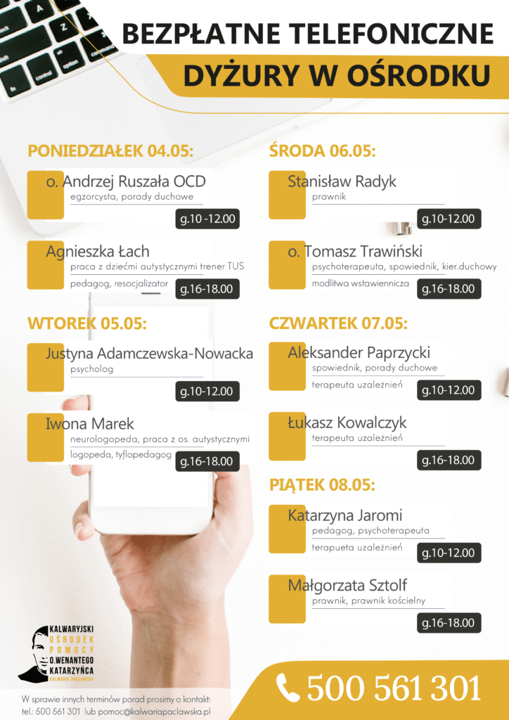 W najbliższym tygodniu zapraszamy na dyżury telefoniczne: