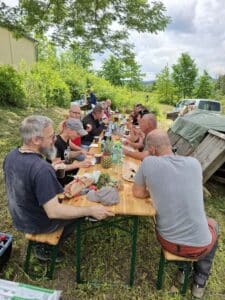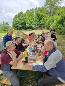 W ostatni dzień maja (31.05.2025) odbyły się prace remontowo-porządkowe przy przyszłej siedzibie Kalwaryjskiego Ośrodka Pomocy o. Wenantego Katarzyńca. Na nasze zaproszenie odpowiedziało prawie 20 osób. DZIĘKUJEMY!!! Wolontariusze przyjechali z Birczy, Buszkowiczek, Kalwarii, Krakowa, Żołyni oraz Żurawicy. Wspólnie zakończyliśmy ocieplanie dachu watą szklaną, malowanie belek dekoracyjnych na parterze oraz uporządkowaliśmy w budynku przygotowując go pod kolejne etapy prac. Po wszystkim spotkaliśmy przy gorącym grillu oraz domowych wypiekach. Jeśli chcielibyście mieć udział w naszym dziele: dzwońcie 500 561 301, piszcie pomoc@kalwariapaclawska.pl, wpierajcie nas modlitwą lub wpłatami https://pomoc.